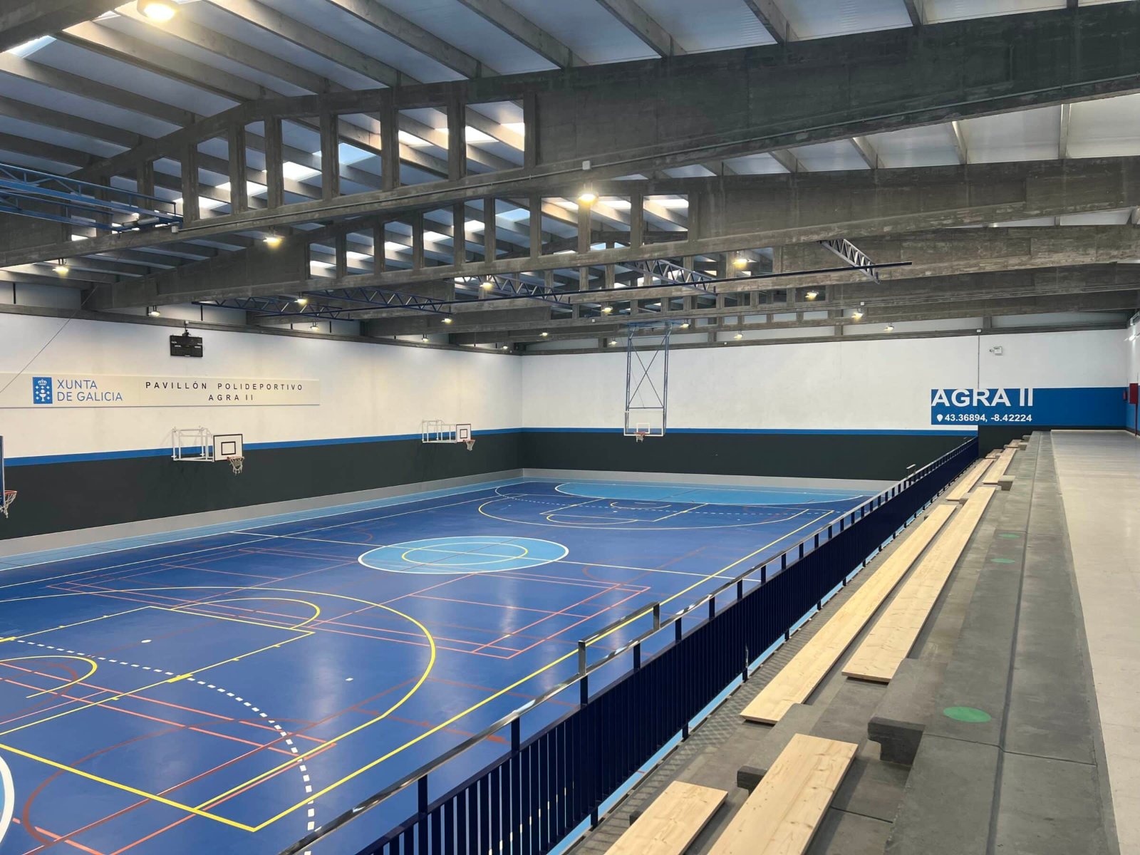 Espazos deportivos: Pavillón poliderportivo 40 m x 25 m, con graderío para 500 persoas aprox.